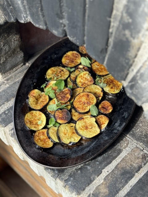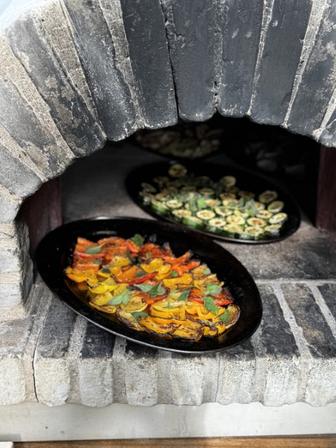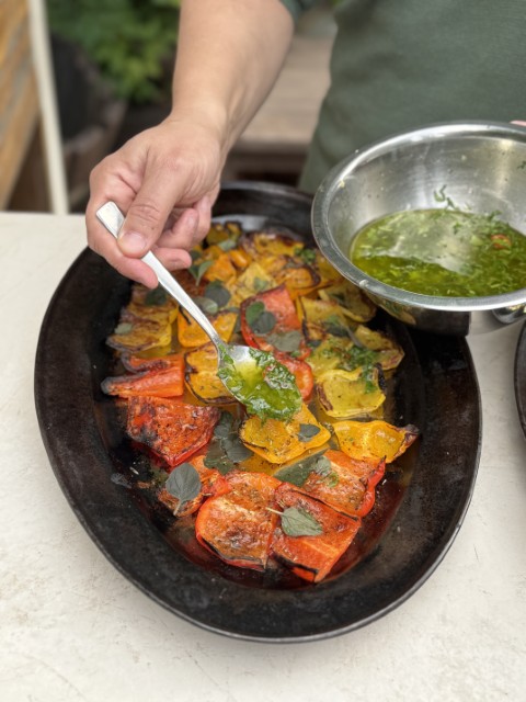 - ירקות צלויים בטאבון עם גרמולטה, רוטב ירוק איטלקי