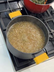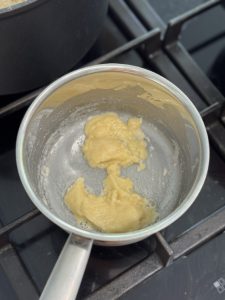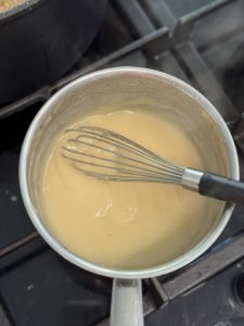 • מכינים רביכה(אופציונלי): בסיר קטן ממיסים חמאה, מוסיפים קמח ומבשלים את הקמח עד להזהבה תוך כדי ערבוב, מוסיפים כוס מהציר שהכנו וטורפים בעזרת מטרפה על מנת שלא יהיו גושים.