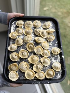 מניחים את הטורטליני על מגש מקומח היטב בסמולינה