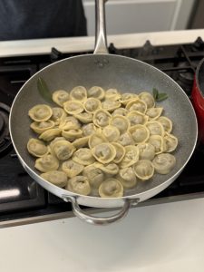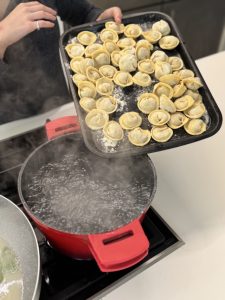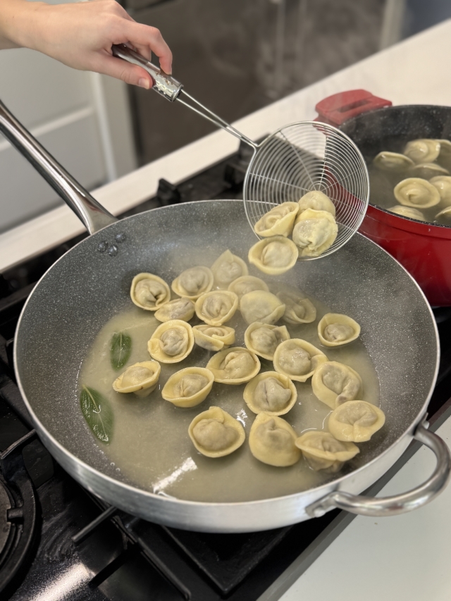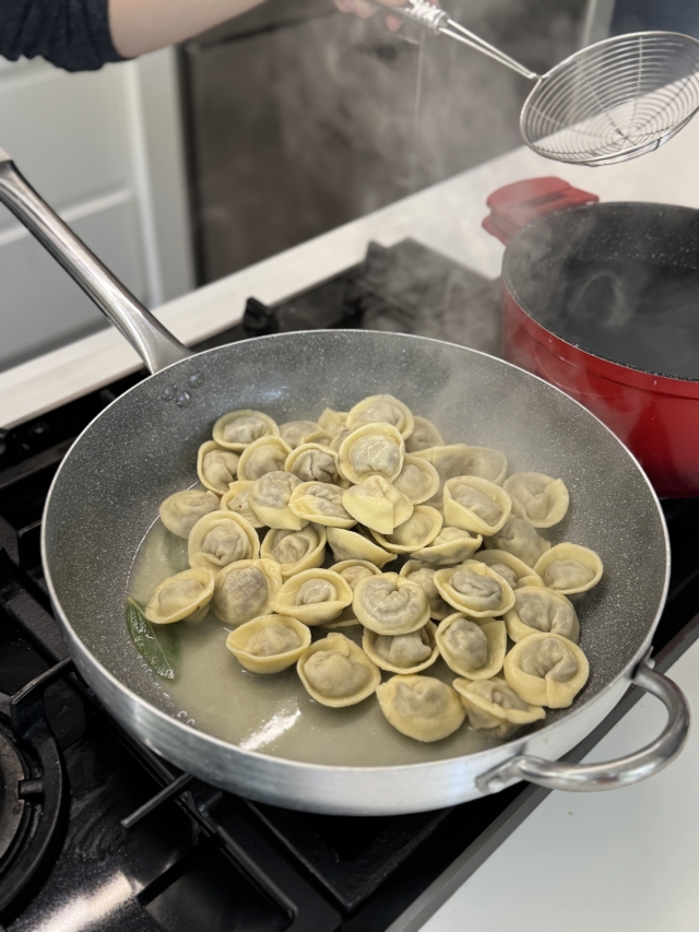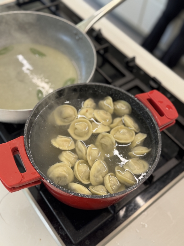 מבשלים את הטורטליני בסיר עם מים רותחים ומלח כ 2-3 דקות, כאשר הם מוכנים מעבירים אותם למחבת עם הרוטב, מערבבים ומגישים