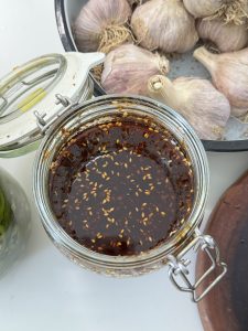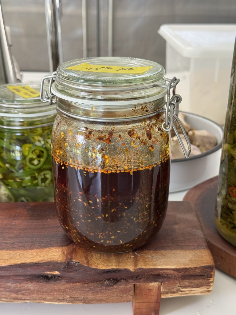 כשמשתמשים בשמן, כדאי תמיד לערבב היטב את הצנצנת כדי להעלות את המשקעים של השום והצ'ילי מהתחתית, שם נמצא כל הטעם והמרקם