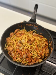 עוף סיני מוקפץ עם נודלס (צ'יקן צאו מיין)